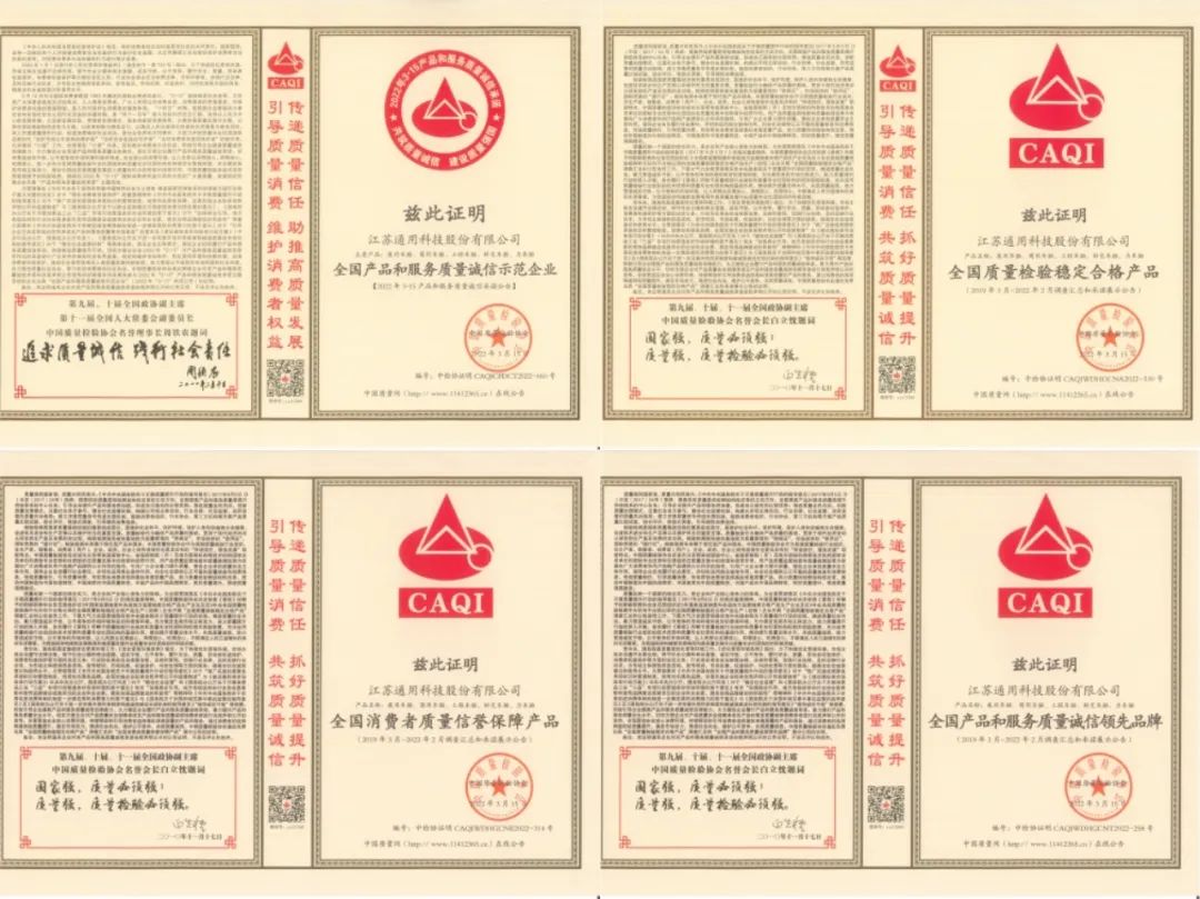 3月15日,通用股份被中國質量檢驗協會授予2022年全國產品和服務質量誠信示范企業、全國消費者質量信譽保障產品、全國質量檢驗穩定合格