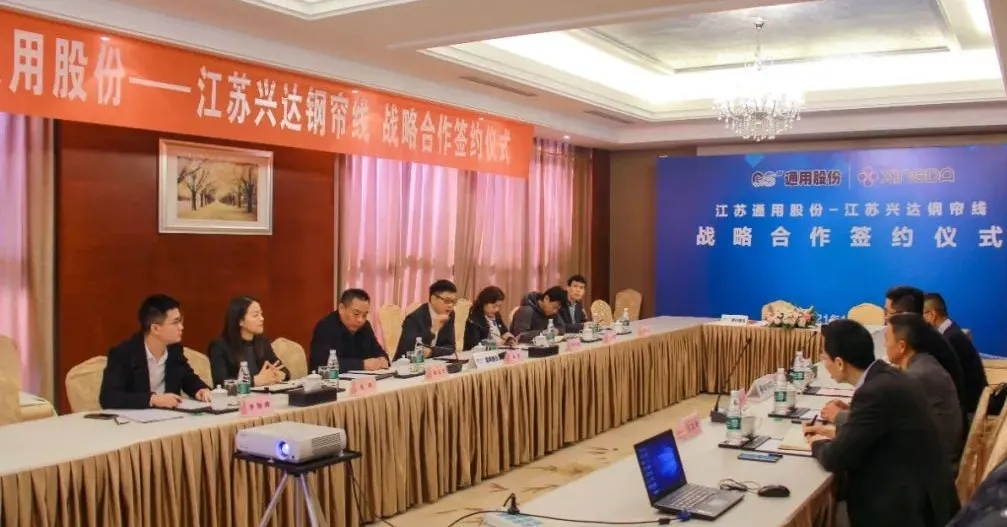1月29日,通用股份與江蘇興達鋼簾線股份有限公司舉辦戰略合作簽約儀式,通用股份董事長顧萃、聯席總經理程金元,興達集團總經理劉祥、