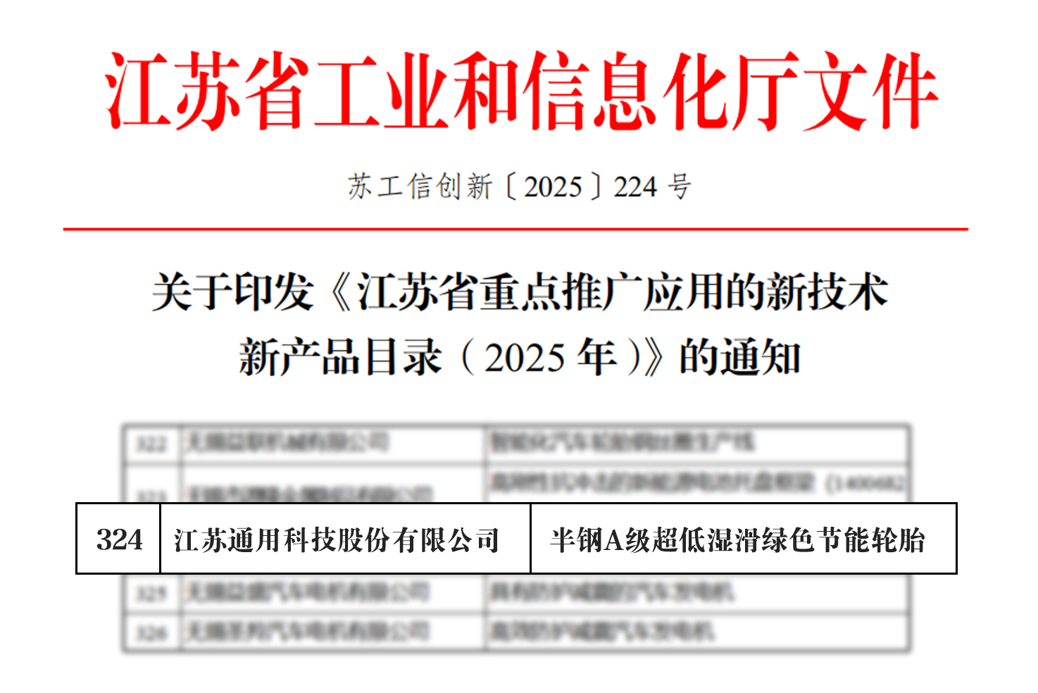 近日,2025年度江蘇省三首兩新認(rèn)定技術(shù)產(chǎn)品名單正式公示。通用股份憑借其在新能源輪胎領(lǐng)域的卓越創(chuàng)新,以《半鋼A級(jí)超低濕滑綠色節(jié)能輪胎》