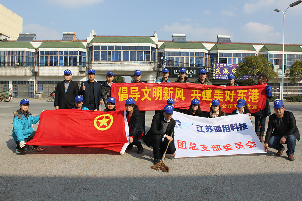 2012年12月11日中午,通用股份團總支組織二十多名青年‘環保衛士’利用午休時間開展“倡導文明建設,共建美麗東港”活動。‘環保衛士們’從