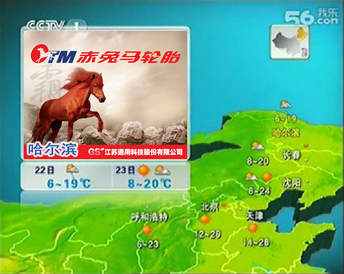 2011年漸漸遠(yuǎn)去,在廣電總局先后下達(dá)“限娛令”及“限廣令”的大背景下,各大企業(yè)紛紛調(diào)整品牌戰(zhàn)略步伐,將目光逐漸轉(zhuǎn)向其他媒介。在此種情況下,央視資源搶占就顯得尤為珍貴,2012年開(kāi)年伊始江蘇通用科技股份有限公司與中央電視臺(tái)攜手,斥資在CCTV-1新聞聯(lián)播《天氣預(yù)報(bào)》哈爾濱版塊投放千里馬、赤兔馬輪胎廣告,歷時(shí)四個(gè)月,為提升品牌高度注入了新的砝碼。