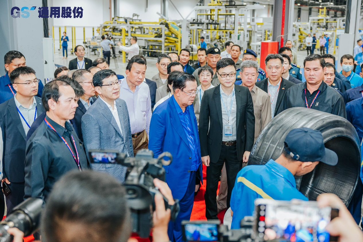 2023年5月22日,“奮進(jìn)新高地 啟航新征程”——通用輪胎科技(柬埔寨)有限公司開業(yè)慶典在柬埔寨西港經(jīng)濟(jì)特區(qū)隆重舉行。柬埔寨首相洪森親臨現(xiàn)場,中國駐柬埔寨大使王文天、中國駐柬埔寨大使館參贊鄔國權(quán)等中柬兩國政府領(lǐng)導(dǎo)及通用股份董事長顧萃、柬埔寨基地全體員工共同參加了活動,見證通用股份國際化戰(zhàn)略布局中的又一重要里程碑。