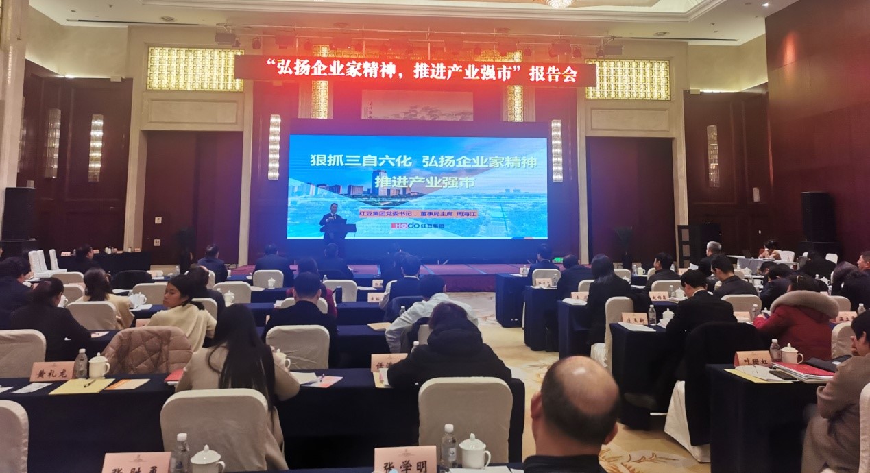 2021年是中國共產(chǎn)黨成立100周年,是“十四五”開局之年,還有很多困難和挑戰(zhàn)擺在我們面前。根據(jù)鎮(zhèn)江聚焦產(chǎn)業(yè)強市,推動高質(zhì)量發(fā)展要求,周海江結(jié)合紅豆集團的實踐,作《狠抓三自六化 弘揚企業(yè)家精神 推進產(chǎn)業(yè)強市》的主題演講。