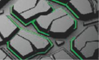 花紋塊底部邊緣增加花紋塊增強結構,增強了花紋塊的強度,提供更加有力的抓地性能。